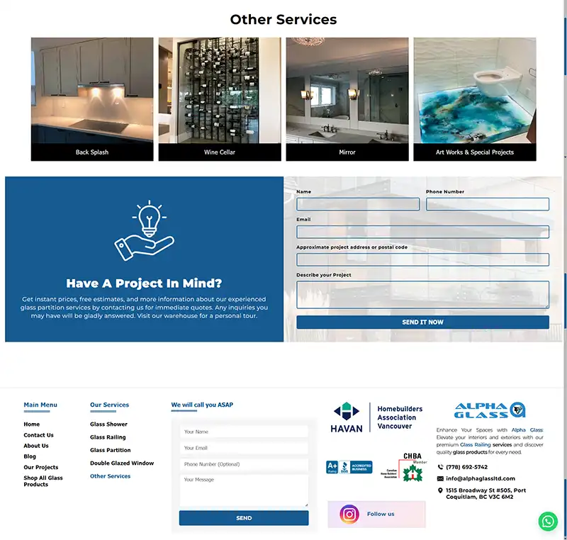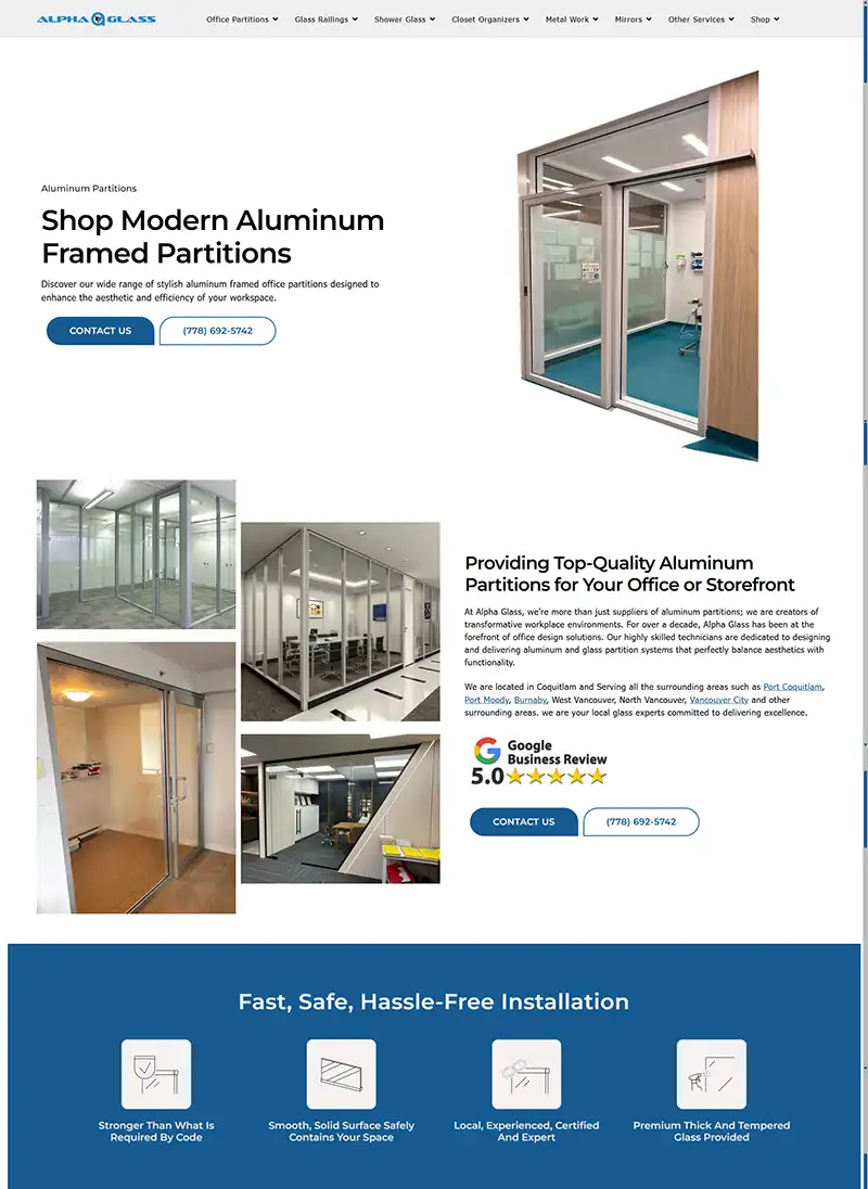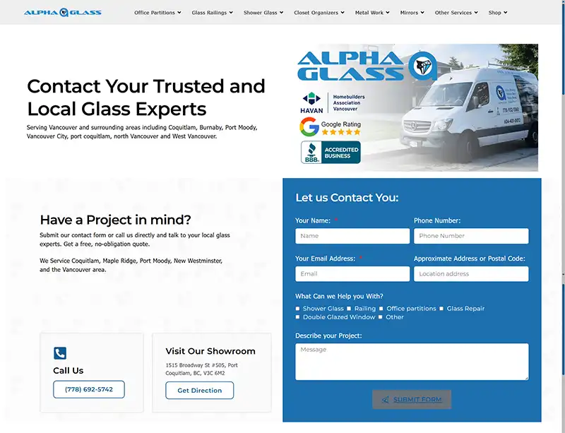 Alpha Glass saw a 40% increase in quote requests within the first 30 days and achieved Page 1 rankings for competitive Vancouver glass terms.