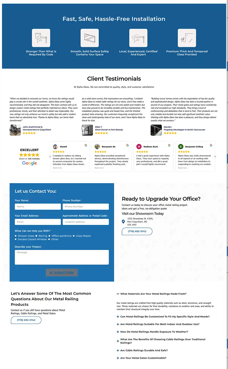 Ranking #1 for Glass and Railing Services in BC As an SEO specialist, we built the site to capture “High-Intent” searches from homeowners and contractors.